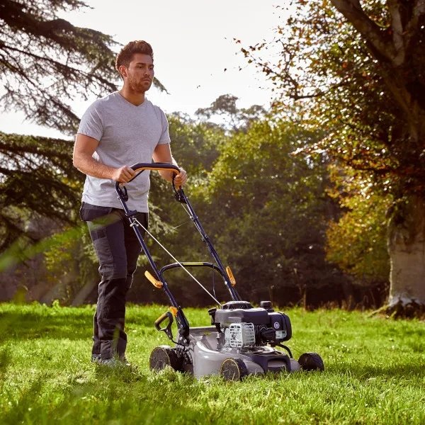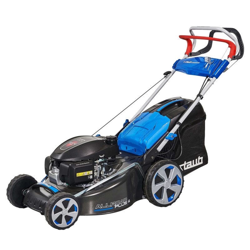 Dieser Mäher fällt unter die Kategorie „Vollprofi”. Ausgestattet mit einem Kraftvollen OHV Motor mit 196cc verfügt dieser Mäher außerdem über einen Kardanantrieb und ein 3-stufiges Schaltgetriebe. Die Räder sind aus Aluminiumguss und gummibereift. Das Gehäuse ist zusätzlich durch Verschleißeinlagen von innen und außen geschützt. Der Frontanfahrschutz kann auch als Transporthilfe benutzt werden.