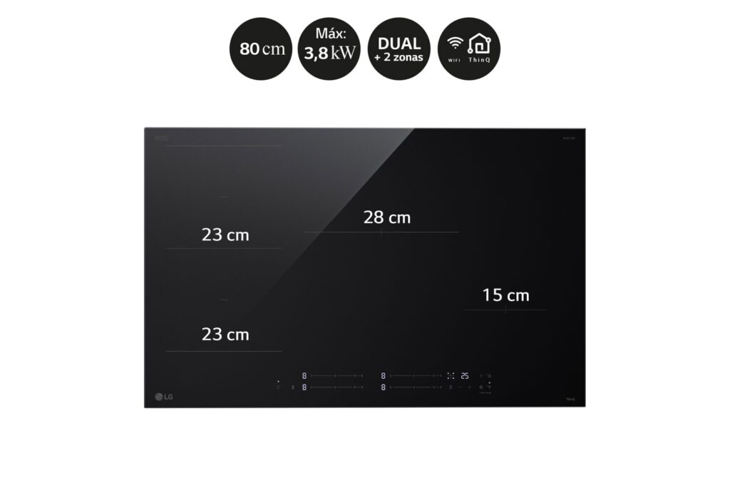 Placa inducción – LG CBIZ3035B, 4 zonas, 2 zonas Flex, 80 cm, Cristal negro
