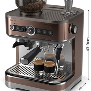 Machine à expresso semi-automatique Philips Barista Brew – Bouton expresso simple et double + Americano, réservoir à grains double de 280 g, confiture calibrée, cappuccino métal (PSA3228/41)