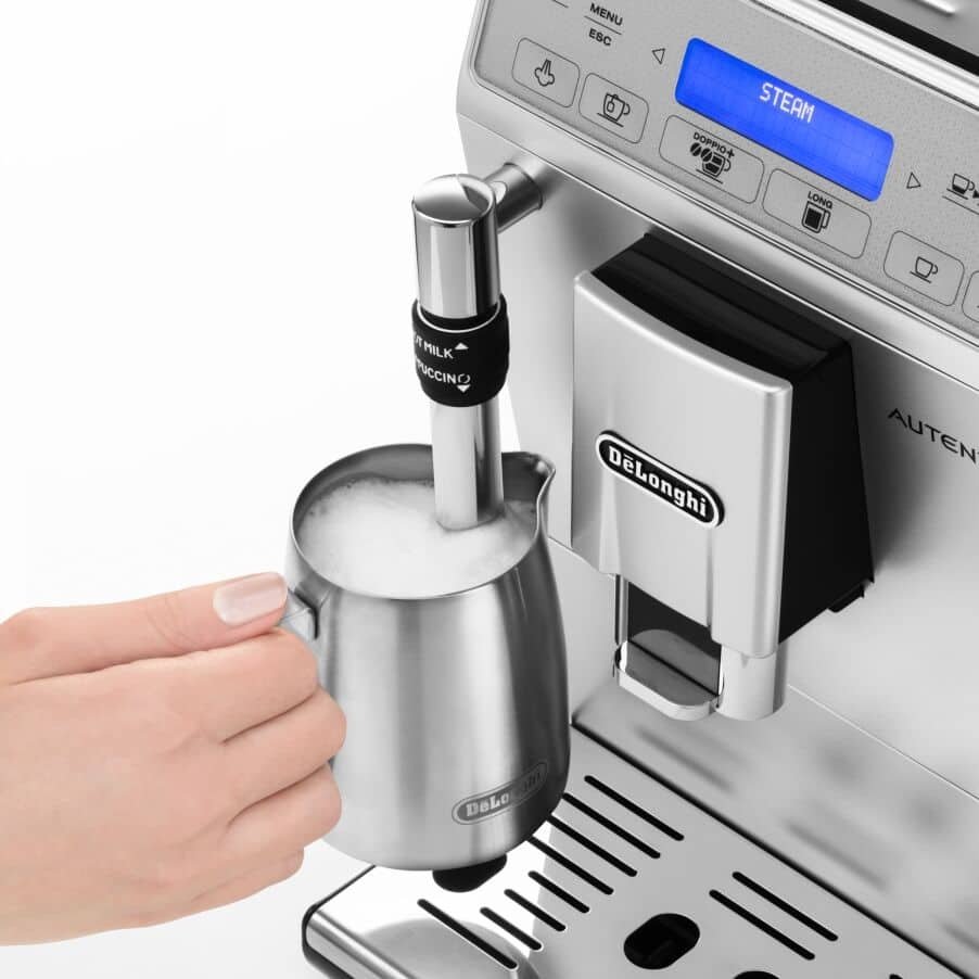 De De’Longhi ETAM29.620.SB (ook bekend als Autentica Cappuccino) is een zeer compacte volautomatische espressomachine met een breedte van slechts 19,5 cm. Toch biedt deze machine uitgebreide functies: versgemalen koffie, programmeerbare instellingen én een automatische melkopschuimer voor cappuccino’s en latte macchiato’s. Met het intuïtieve bedieningspaneel en de twee speciale functies – Doppio+ en Long Coffee – kunt u zowel krachtige espresso als een zachte lungo bereiden.