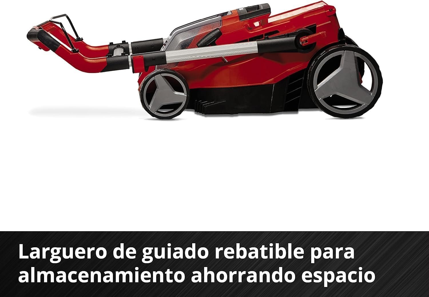 - De in hoogte verstelbare, telescopische handgreep kan aan iedere gebruiker worden aangepast. De handgreep is opvouwbaar en zorgt voor een gemakkelijke opberging van de maaier. De handgreep is gemaakt van aluminium en is licht en stabiel.