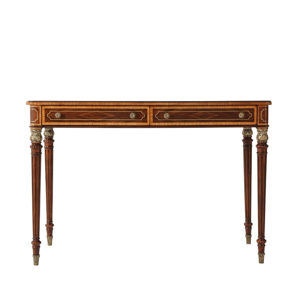 Morley Desk Theodore Alexander incarne élégance intemporelle et savoir-faire artisanal exceptionnel. Design inspiré du mobilier classique anglais revisité avec subtilité contemporaine, conçu pour répondre aux exigences esthétiques et fonctionnelles d’un environnement de travail raffiné. Structure en bois massif marqueté à la main, finition patinée soulignant richesse naturelle du grain et profondeur des teintes.