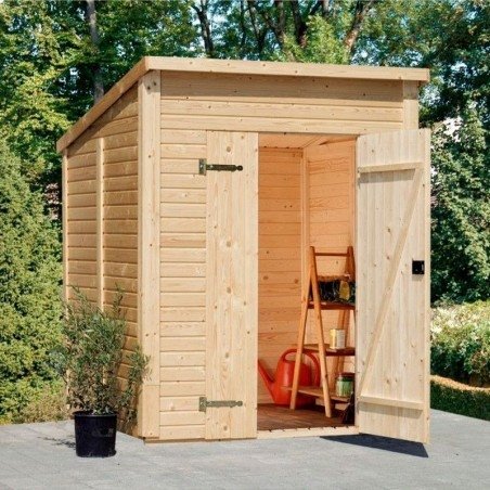 Uno de nuestros productos más funcionales es el cobertizo de madera Jane o Leif 2, práctico para todo tipo de almacenaje. Cuenta con unas medidas de cubierta 189 x 186 cm. Dispone de una puerta de doble hoja media de 102 x 182cm.