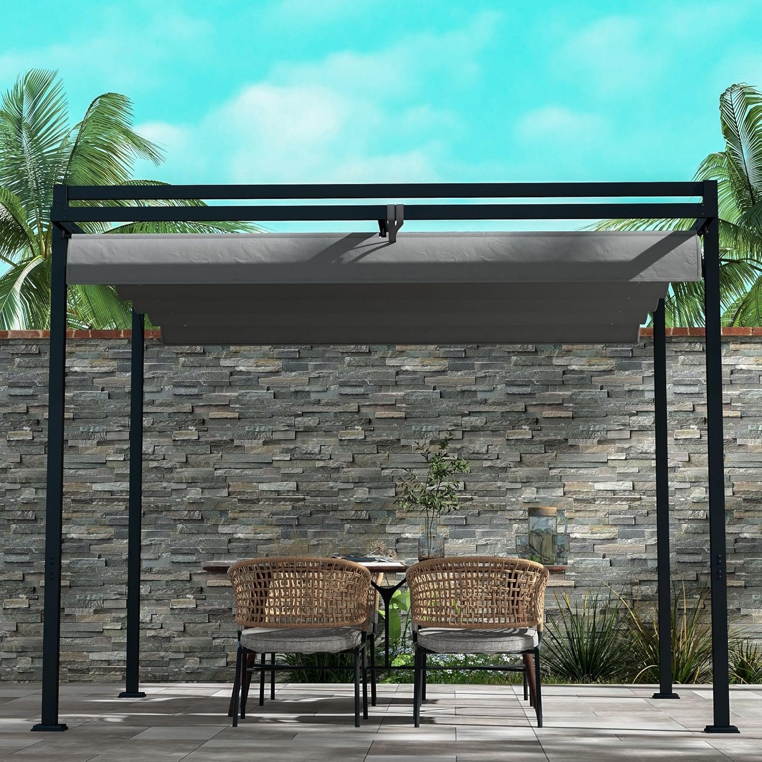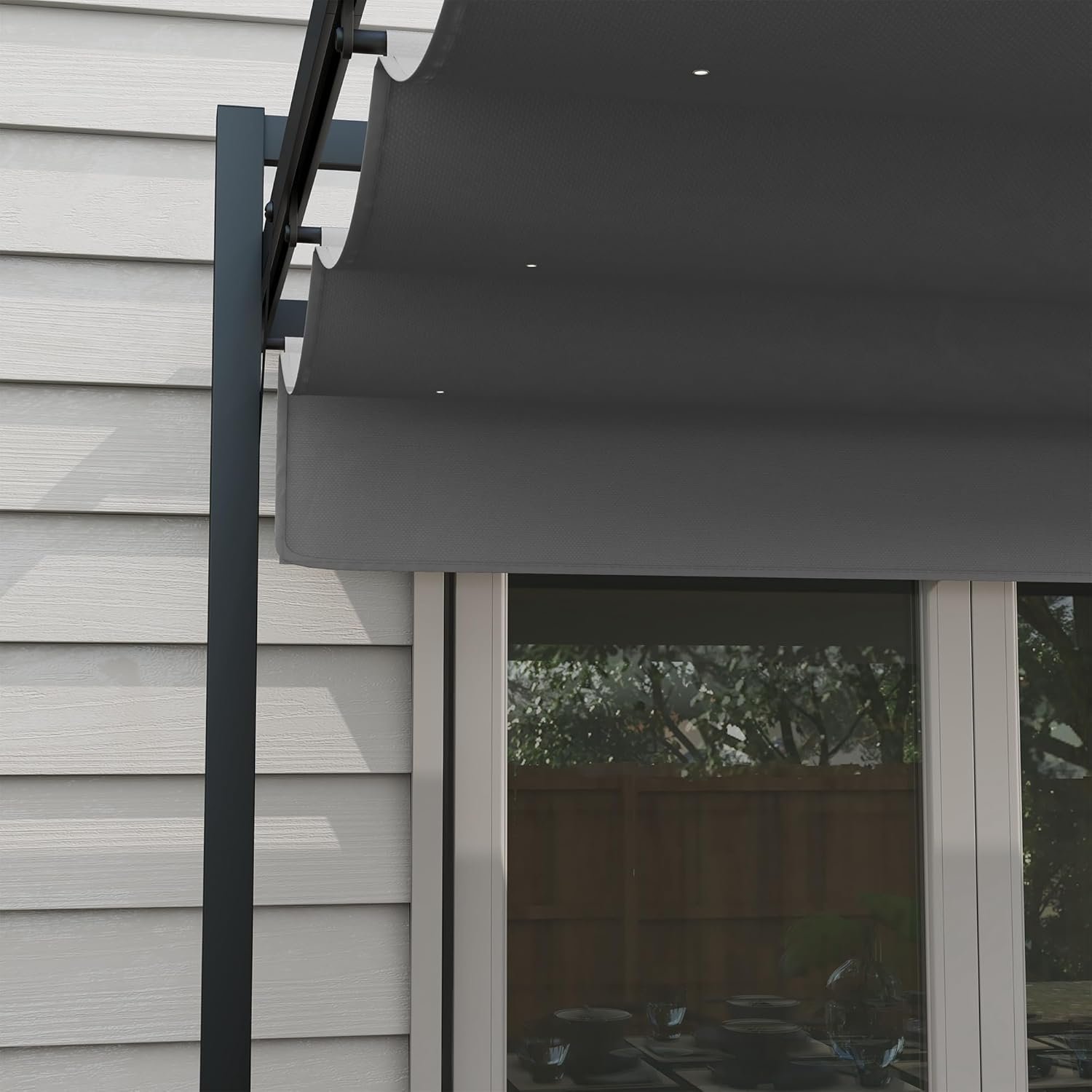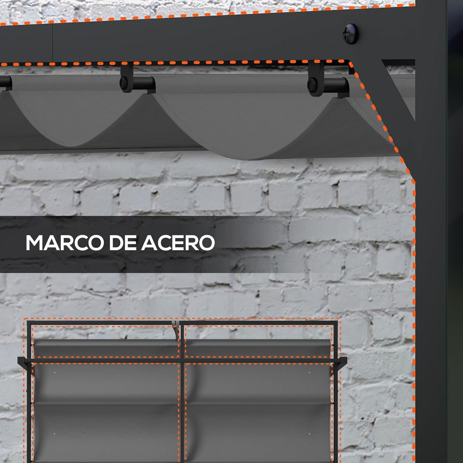 - PÉRGOLA DE JARDÍN CON TOLDO RETRÁCTIL: Equipada con un toldo retráctil, esta pérgola te permite controlar la cantidad de luz solar que deseas recibir. Mantén el toldo cerrado para disfrutar del sol o ábrelo para protegerte del deslumbramiento y las quemaduras solares