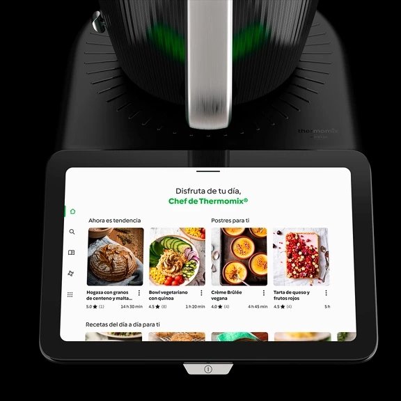 - Cocina Guiada: Deja que Thermomix® TM7 te inspire y sigue las recetas paso a paso con facilidad a través de su pantalla multitáctil de 10“.