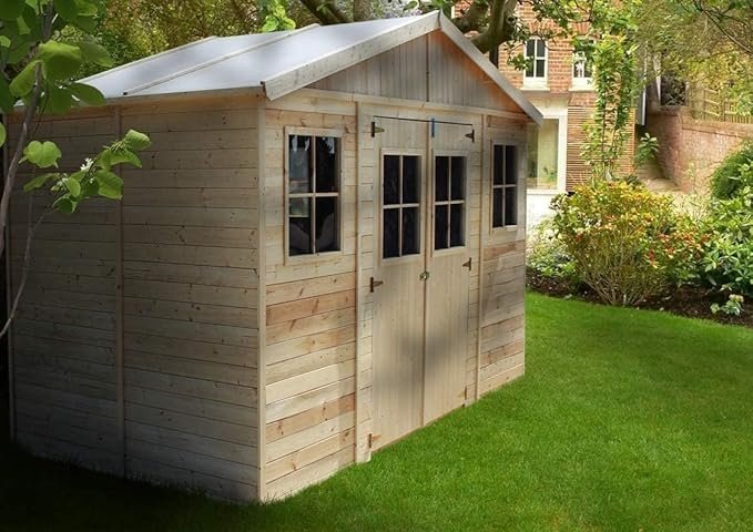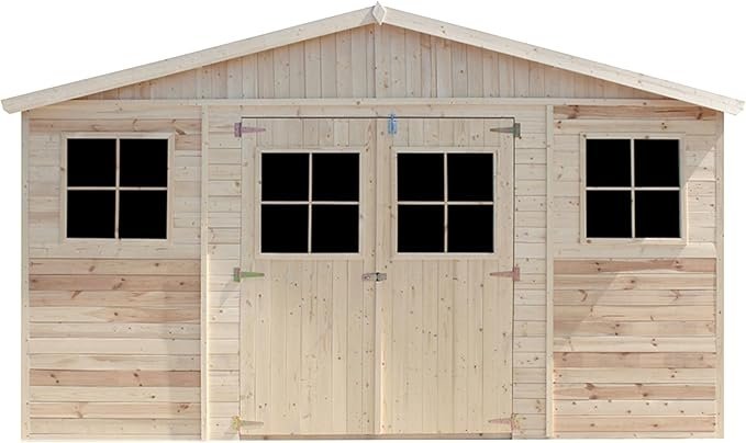 - PERFECTA COMO CASA DE VERANO. Gracias a la doble puerta y a las ventanas de plexiglás que dan mucha luz natural, hacen de esta cabaña de jardín una impresionante casa de jardín de verano. Tu parrilla y muebles de exterior y piscina pueden ser rápidamente accesibles para los calurosos días de verano.
