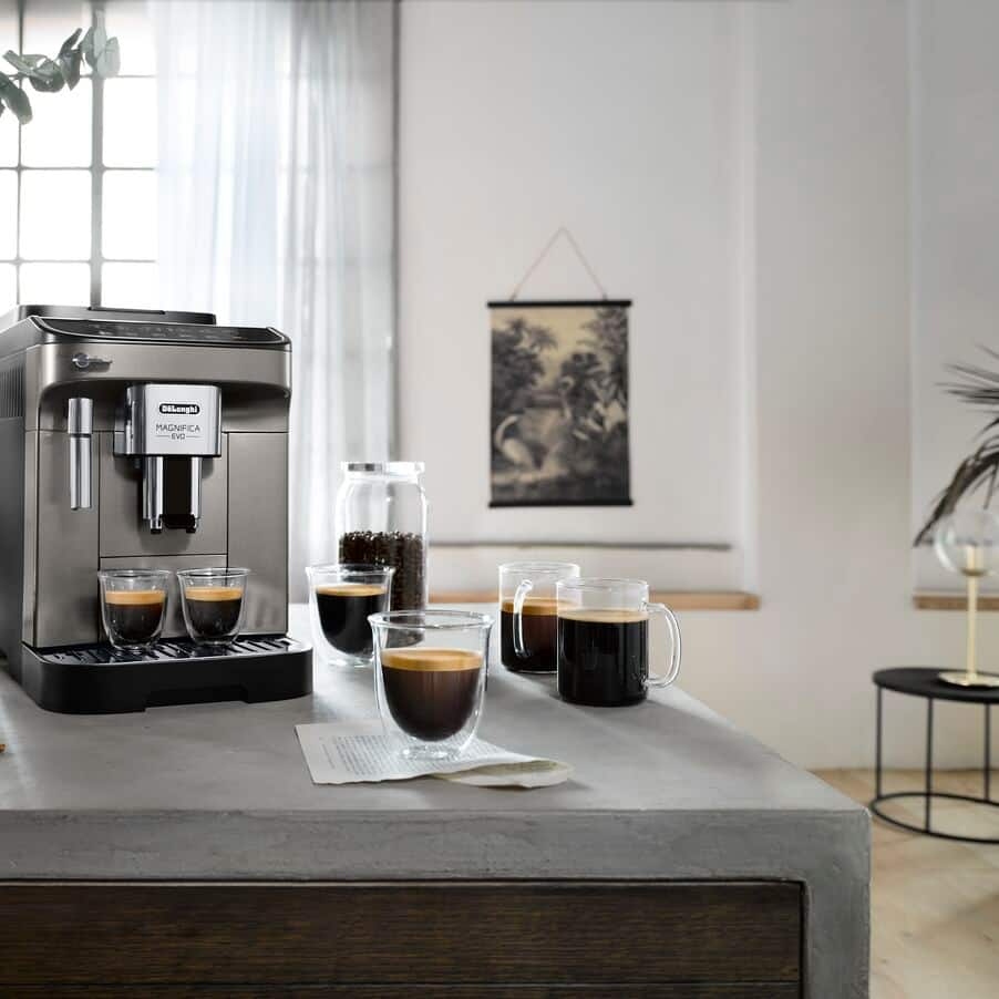 Profitez de l’expérience ultime du café dans le confort de votre maison avec la Magnifica Evo de De’Longhi. Préparez l’espresso parfait à partir de grains fraîchement moulus, l’une des 6 recettes disponibles d’une simple pression. Elle est dotée d’un écran tactile intuitif avec des icônes en couleur pour chaque recette. Sa finition élégante noire et en titane est le complément parfait de toute cuisine moderne.