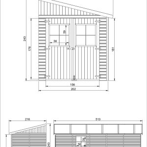 Timbela Cobertizo de madera – h244x218x416 cm/8.1 m2