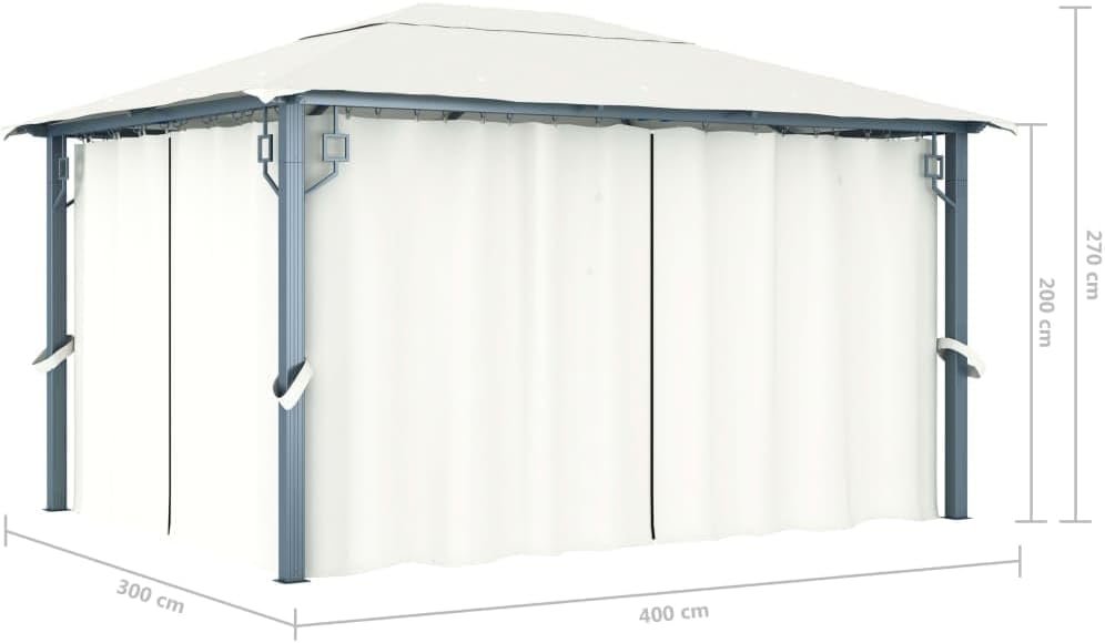 Cenador con cortina color crema aluminio 400×300 cm Vidaxl