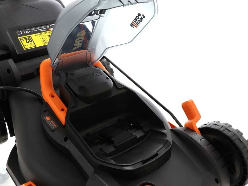 - De WORX PowerShare is compatibel met alle 20V, 40V en 80V WORX-gereedschappen, evenals met outdoor- en dagelijkse producten. De WG743E wordt aangedreven door twee 20V 4Ah PowerShare-accu’s en maait tot 500 m² op één acculading.