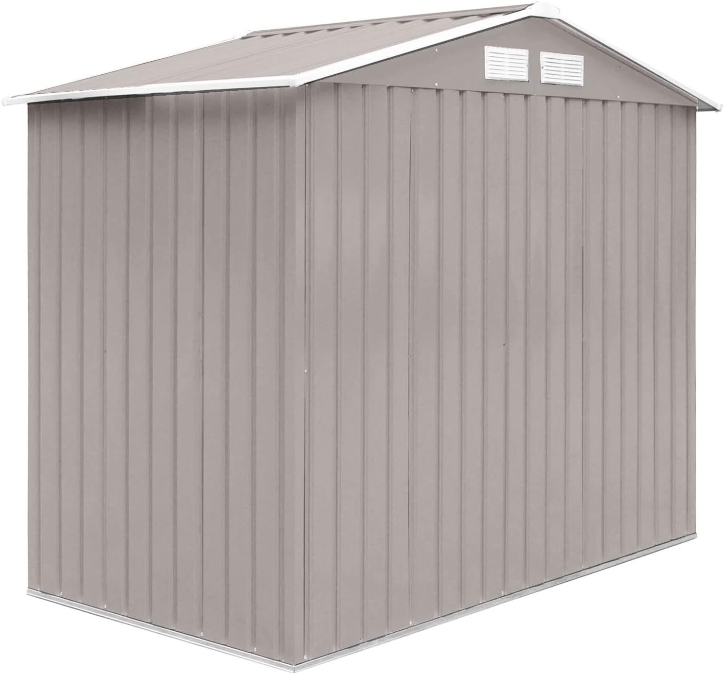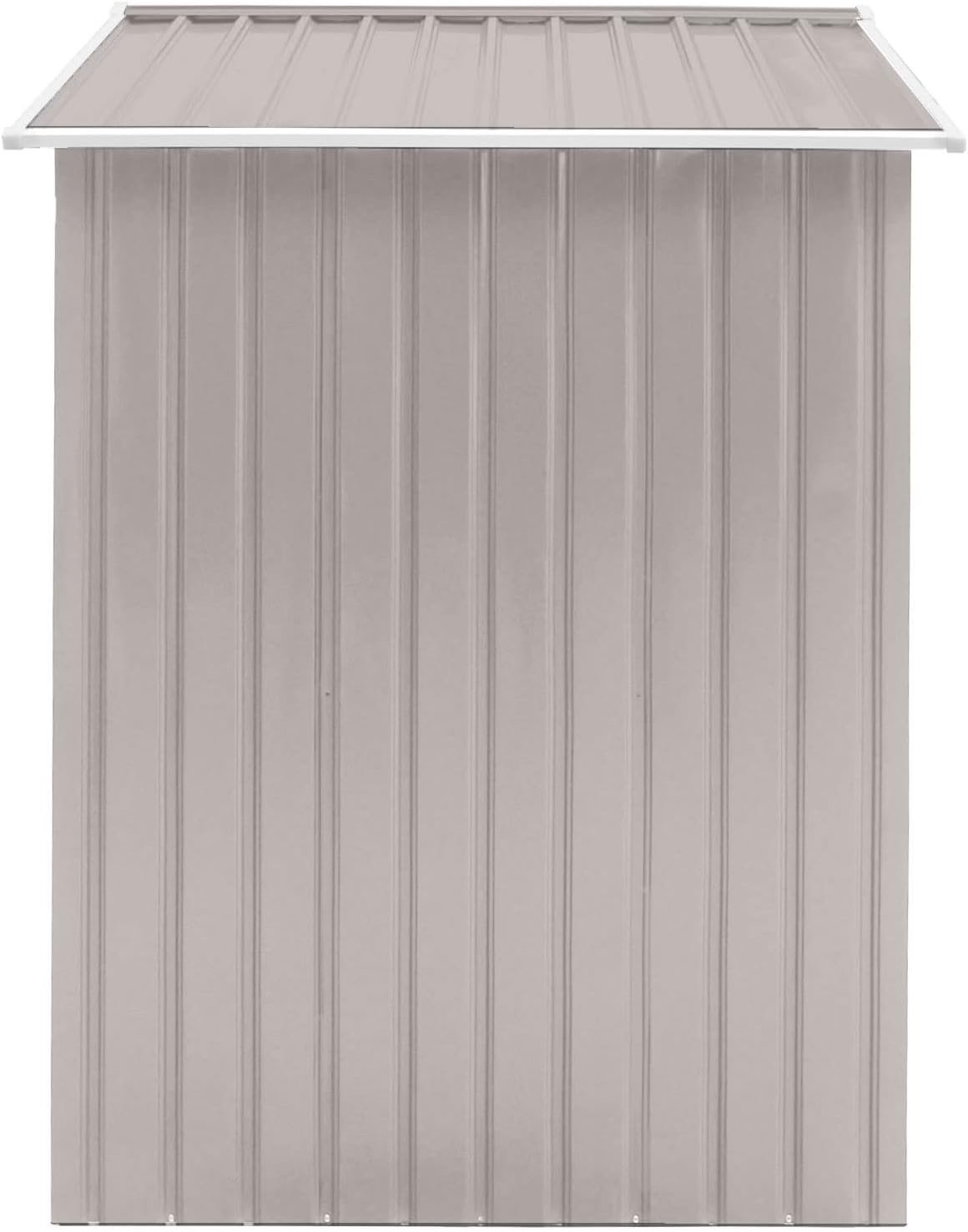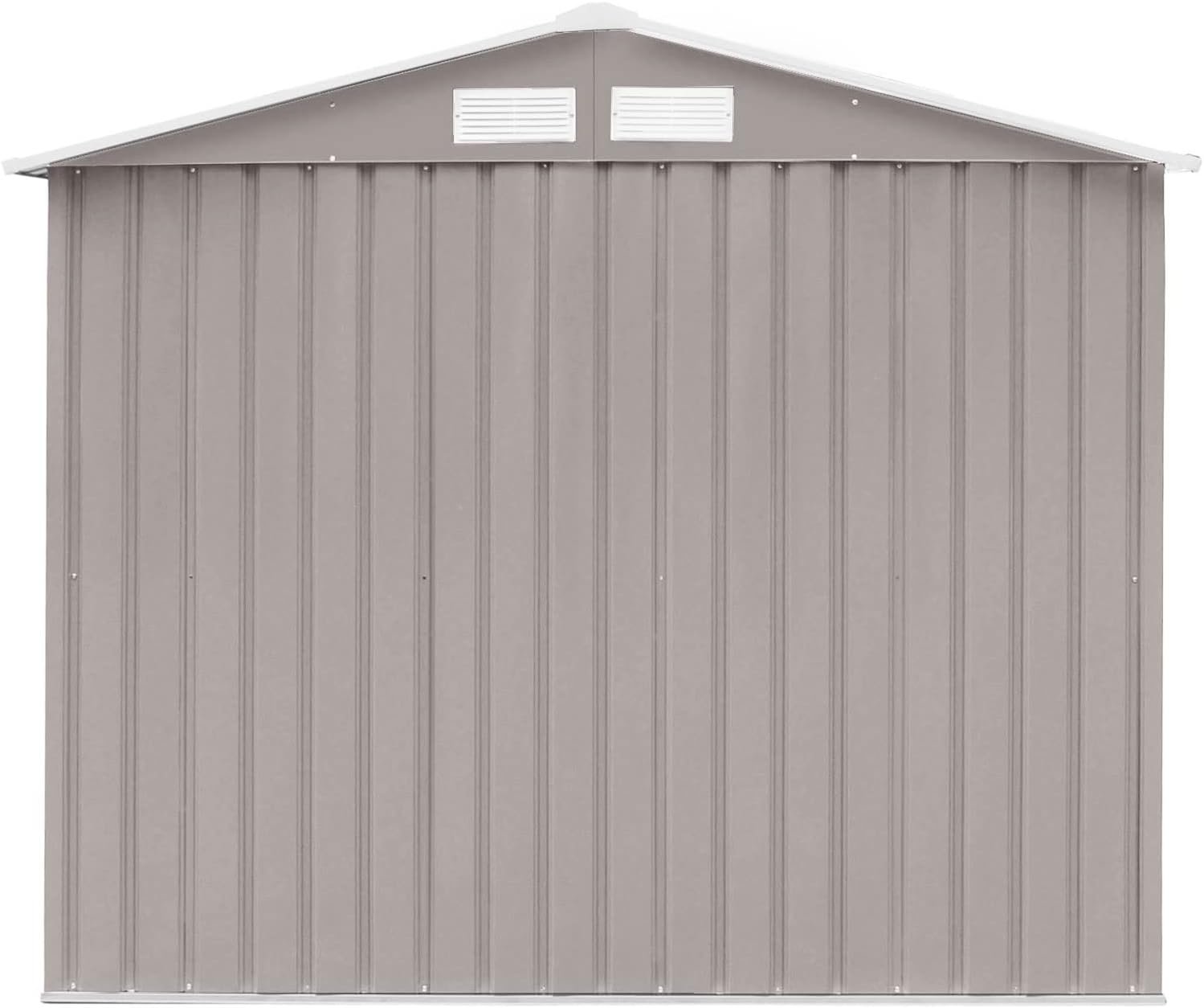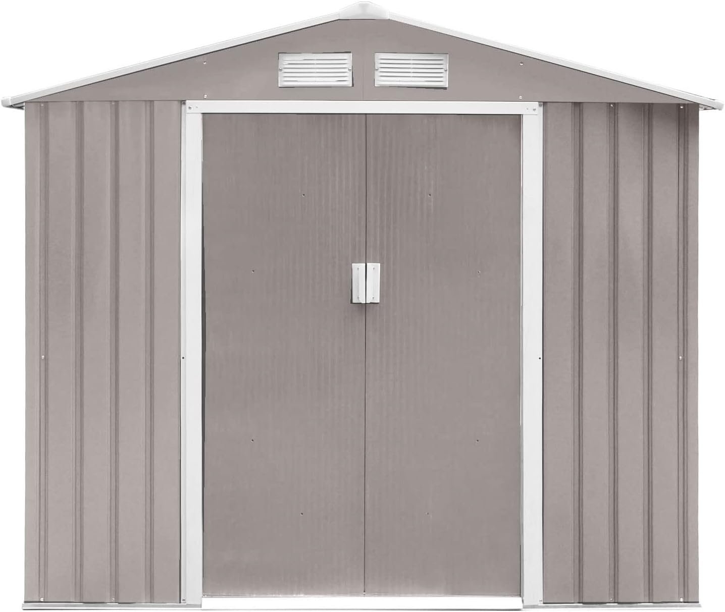 De schuur is gemaakt van geverfd en gegalvaniseerd plaatstaal en heeft een tijdloos design. Het meegeleverde metalen funderingsframe biedt stabiliteit en een veilige stand – u heeft de mogelijkheid om hier een vloer te plaatsen (vloerplaten niet inbegrepen).