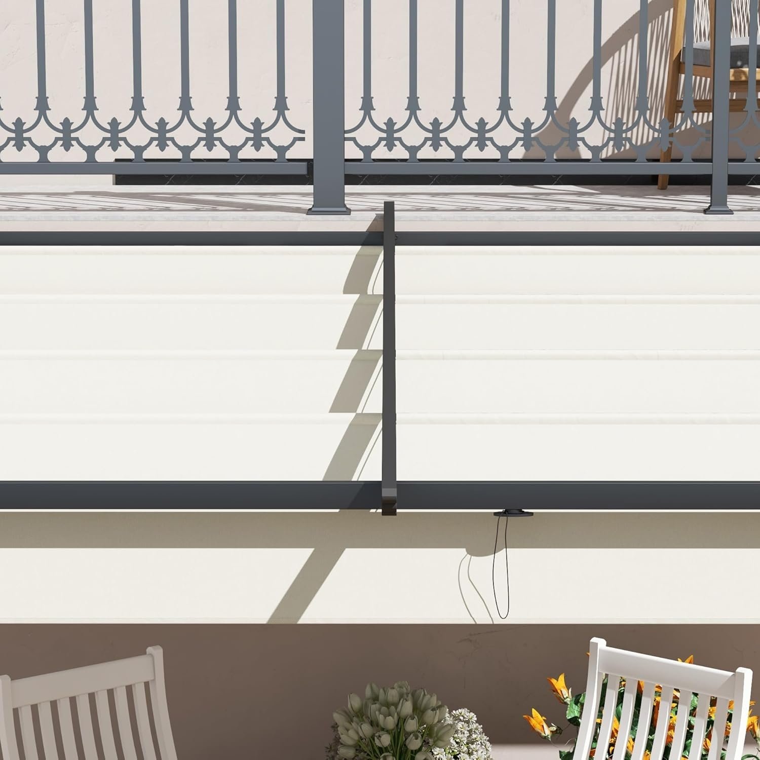 - Pérgola de pared: Esta pérgola de acero, que se adhiere a la pared de su casa, cuenta con dos patas que la sostienen del suelo, creando un espacio exterior que se siente como una extensión natural de su hogar. Su diseño de montaje en pared le permite ahorrar espacio, lo que la hace ideal para patios o jardines pequeños.