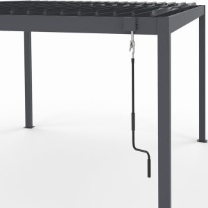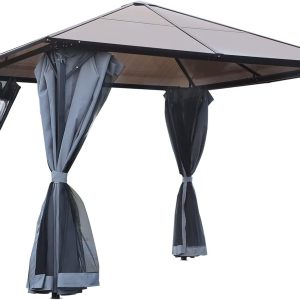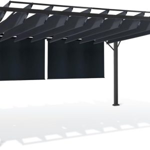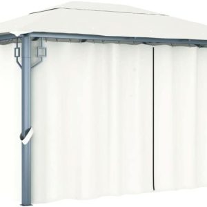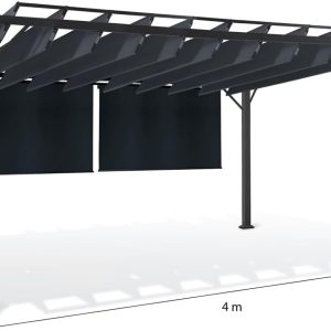 La carpa para fiestas tiene una construcción de acero con recubrimiento en polvo, que es estable y duradera. El techo de poliéster con revestimiento de PA hace que sea resistente al agua y a los rayos UV. Además, viene con cortinas laterales para mayor privacidad y sombra.