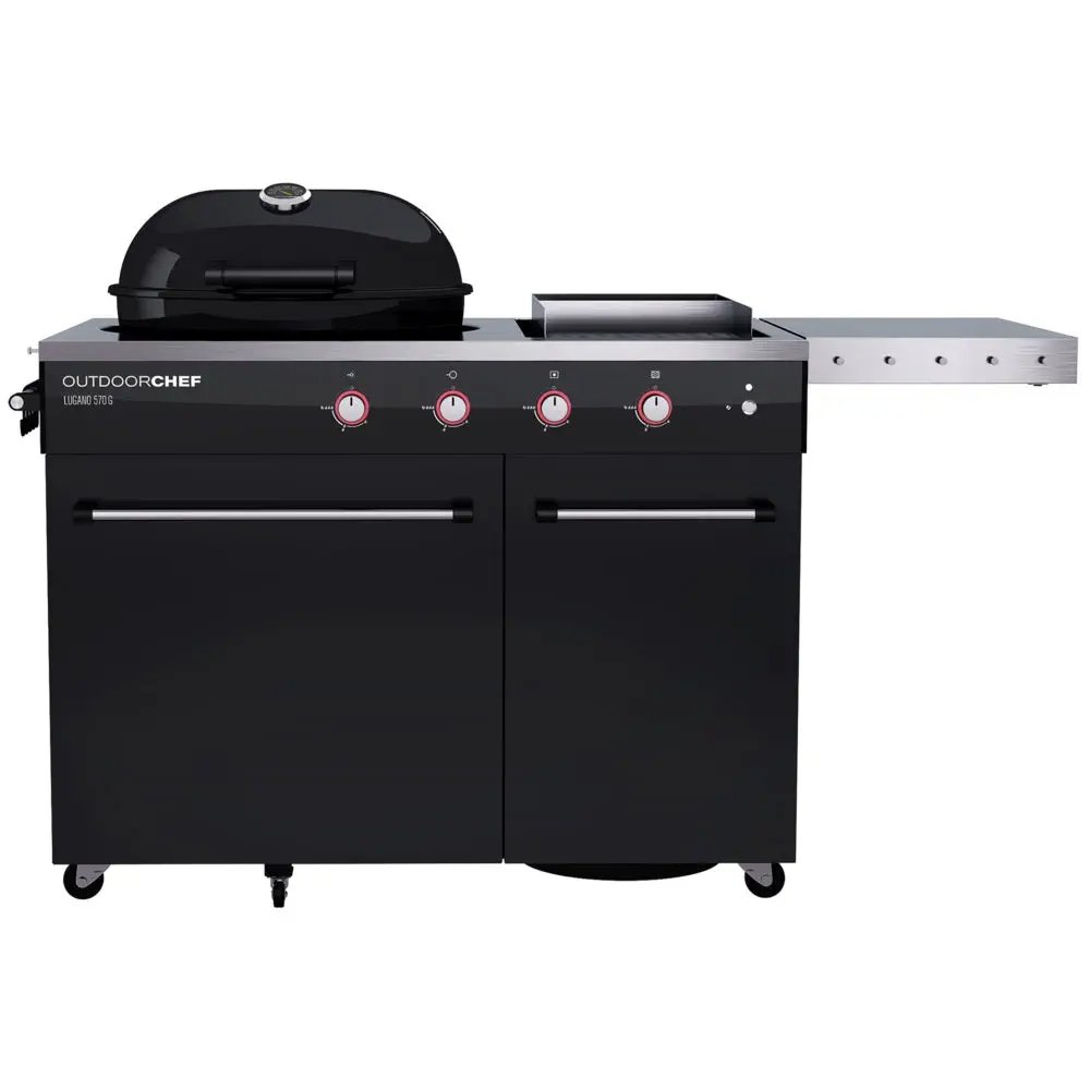 Barbacoa de gas LUGANO 570 G EVO pensada para entusiastas de cocina al aire libre que buscan potencia, precisión y estilo en cada preparación, equipo diseñado para transformar jardín, terraza o patio en espacio gastronómico de primer nivel, construcción sólida con cuerpo reforzado en acero esmaltado resistente a altas temperaturas y condiciones climáticas adversas, superficie de cocción extragrande que permite preparar alimentos variados al mismo tiempo, parrillas de hierro fundido con recubrimiento vitrificado que garantizan durabilidad, fácil limpieza y excelente transmisión de calor, quemadores de acero inoxidable de alto rendimiento que distribuyen calor de forma homogénea evitando puntos fríos, sistema de encendido electrónico integrado que ofrece arranque inmediato sin complicaciones, tapa robusta con termómetro analógico para control exacto de temperatura durante asados directos o cocción lenta tipo ahumado, espacio interior diseñado para lograr máxima eficiencia energética reduciendo consumo de gas, laterales plegables con bandejas amplias que facilitan organización de utensilios, especias, salsas y accesorios, compartimento inferior cerrado que aporta orden y seguridad para almacenamiento de bombona de gas o elementos complementarios, ruedas reforzadas con sistema de bloqueo que permiten movilidad sencilla y estabilidad total en cualquier superficie, diseño ergonómico que optimiza uso incluso en sesiones prolongadas, acabados modernos que combinan elegancia suiza con funcionalidad avanzada, apta para reuniones familiares, celebraciones con amigos o eventos profesionales, solución confiable que convierte cada encuentro en experiencia culinaria memorable con sabor auténtico, jugosidad garantizada y versatilidad incomparable, ideal para preparar carnes rojas, aves, pescados, mariscos, verduras, panes, pizzas y platos de autor con resultado digno de restaurante, opción perfecta para quienes valoran tecnología innovadora, resistencia duradera y placer de cocinar al aire libre con confianza y estilo, elección premium que asegura momentos inolvidables acompañados de aroma intenso, textura perfecta y rendimiento superior en cada ocasión.