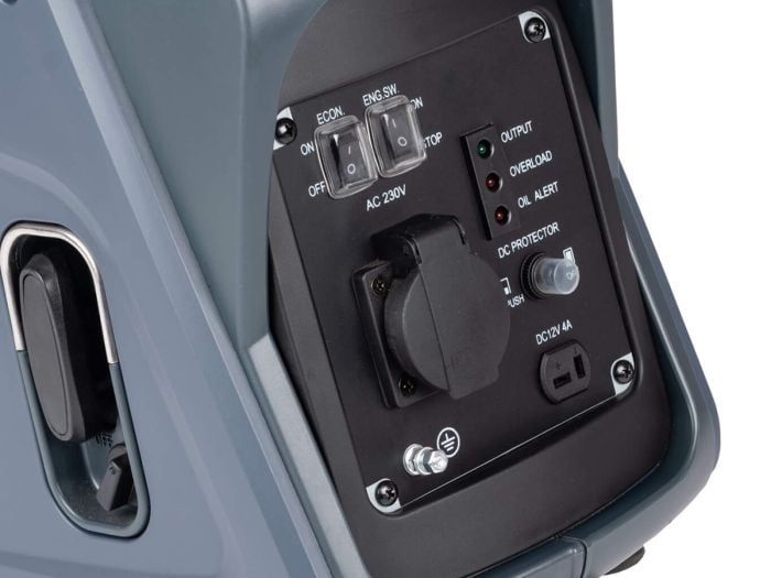 Ce groupe électrogène fonctionne à l’essence et a un niveau sonore maximum de 68 décibels à environ 7 mètres. Le générateur est également équipé d’une alarme d’huile, qui émet un signal lorsqu’il y a trop peu d’huile dans le générateur.