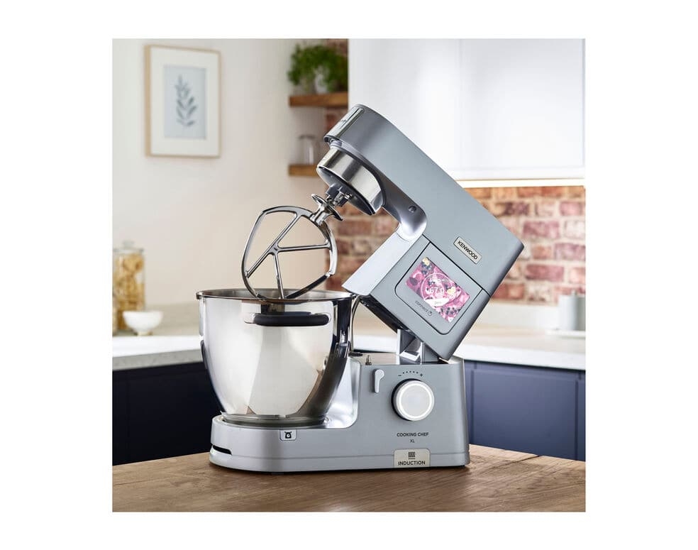 Kenwood Cooking Chef XL. Inhoud bak/kan: 6,7 l, Kleur van het product: Zilver, Soort bediening: Draaiknop, Touch. Bowl materiaal: Roestvrijstaal, Materiaal behuizing: Metaal. Type beeldscherm: LCD. Vermogen: 1500 W. Gewicht: 10,4 kg