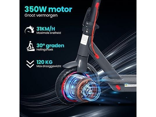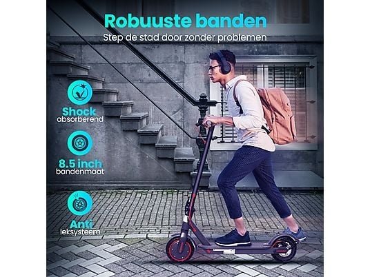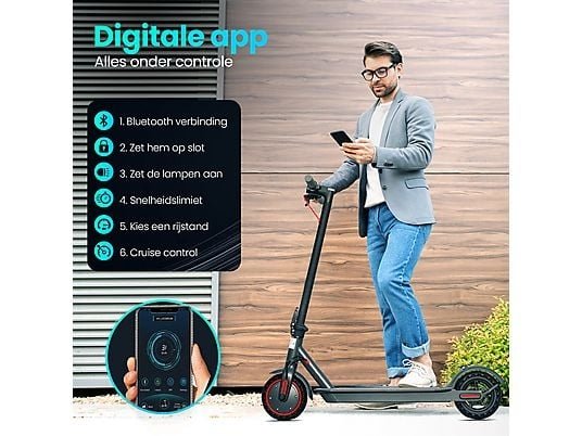 Met de Stay-on M365 GO elektrische step en zijn 350W krachtige motor breng je jezelf moeiteloos naar snelheden tot 31 km/u. Dankzij de 10.5Ah lithium-ion batterij heb je een bereik tot 35 kilometer* op een volle accu. Ga voor de ultieme rij ervaring! **Kies je voor Stay-on dan ben je verzekerd van:** -Persoonlijke service en ondersteuning -Reserve onderdelen altijd op voorraad -Verzekerde after-service met vlotte afhandeling -Werkplaats en showroom op locatie waar je altijd terecht kunt **Snelheid** Standaard is de elektrische step ingesteld op maximale snelheid van 25km/u. In de smart-app stel je hem eenvoudig in op 31km/u. Het instellen van de snelheid, naar E C O-, COMFORT- of SPORTMODUS met een top snelheid van 31km/u. De Stay-on GO heeft 3 rij standen, wijzig eenvoudig het snelheidsniveau met twee drukken op de knop, om de snelheid aan te passen aan de rij omstandigheden voor maximaal rijcomfort. **3 Rijstanden:** -E C O modus heeft een maximale snelheid van 10 of 15 km/u -COMFORT modus heeft een maximale snelheid van 20 of 25 km/u -SPORT modus heeft een maximale snelheid van 25 of 31 km/u **Draagbaar, sterk, solide en compact inklapbaar/ lichtgewicht:** Dankzij het eenvoudige one-touch inklapsysteem kan deze Stay-on GO in no-time worden ingeklapt en is de step eenvoudig te dragen of kan worden meegenomen in de auto. Het aluminiumframe zorgt voor een ultiem lichtgewicht elektrische step en is eenvoudig is mee te nemen in het openbaarvervoer. **Ultiem rijcomfort:** De Stay-on GO is voorzien van 8.5 inch honinggraat rubberen anti-lekbanden, welke nooit lek kunnen raken. De banden zijn daarnaast schokbestendig, antislip en geschikt voor de meeste weg omstandigheden. De schokdemping aan het voor- en achterwiel zorgen voor maximaal rijcomfort, terwijl het elektronisch antiblokkeersysteem en mechanisch remschijf remsysteem een veilige remweg verzekeren. **HD Display:** Via het LCD dashboard op de step is de Stay-on GO eenvoudig te bedienen. Hier vindt u knoppen voor de zeer heldere LED koplamp en het achter remlicht om de rijveiligheid te garanderen. Op het heldere en strakke LCD scherm kunt u daarnaast alle relevante informatie aflezen, zoals het laad- en batterijniveau, rijstand en de snelheid. **Veilig en zeker/ Multi-bescherming:** De step is volledig gecertificeerd volgens Europese normen (CE). Gebruikersveiligheid is onze prioriteit. Zo beschikt de step over een ingebouwde beveiliging tegen overbelasting van de batterij. Daarnaast is de step voorzien van een motorbeveiligingscontrolesysteem. Een superbestendige batterij die de veiligheid tijdens het rijden garandeert en overbelasting automatisch reguleert. **Altijd in controle** Met behulp van de smart-app (Iphone en Android) kun je de verschillende functies van de step gemakkelijk en efficiënt instellen. In aanvulling op de fysieke step bediening kunt je met de smart-app de volgende functies van de step bedienen. **Real-time informatie** Het inzien van real-time statistieken waar onder: het resterende accu vermogen, de huidige snelheid, het beschikbare actieradius en de totaal afgelegde afstand. **Altijd voorzien van de nieuwste updates** Nieuwe firmware updates zorgen dat de step altijd voorzien is van de laatste software updates en de beste rijervaring biedt. **Rit snelheid/ tracking op de app:** Open je smartphone en verbind deze gemakkelijke via bluetooth met de step. Hiermee heb je ook op afstand direct inzicht en toegang tot alle rij functies van de step. **Verlichting instellen** Aan en uit/schakelaar voor de LED verlichting + instelbare automatische uitschakeling.