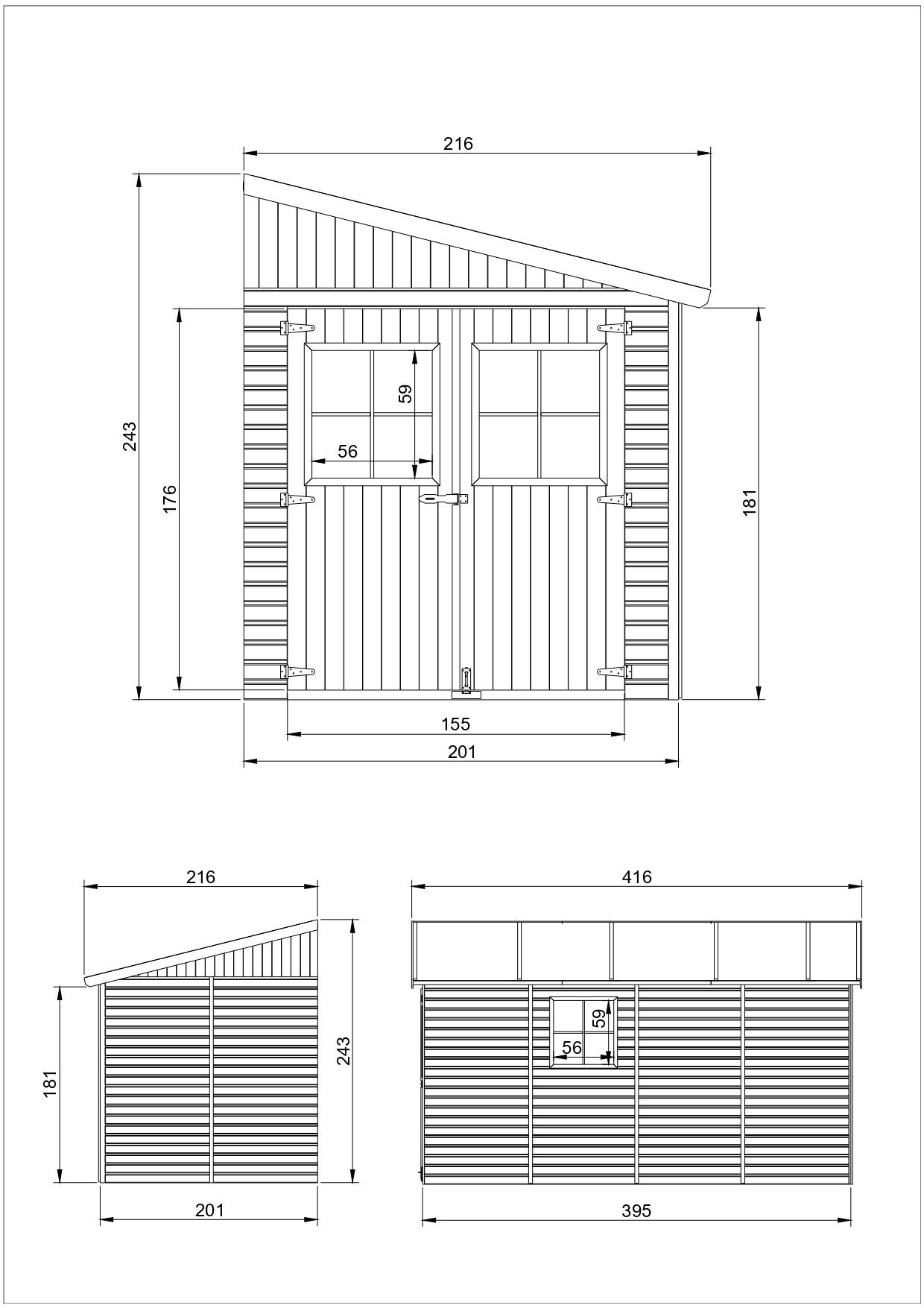 – Dimensiones externas sin techo: L 395 x An 201 cm