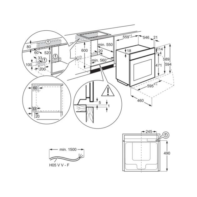 - 60 cm hoog | Geschikt voor inbouw in een hoge kast of onder het aanrecht, zie maatschets