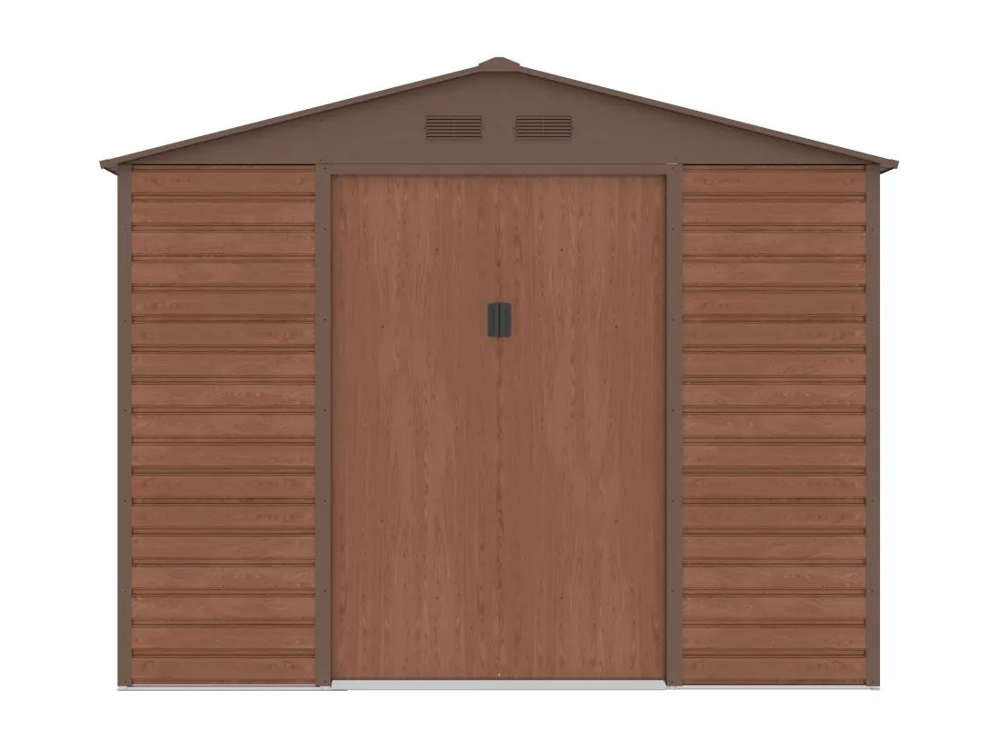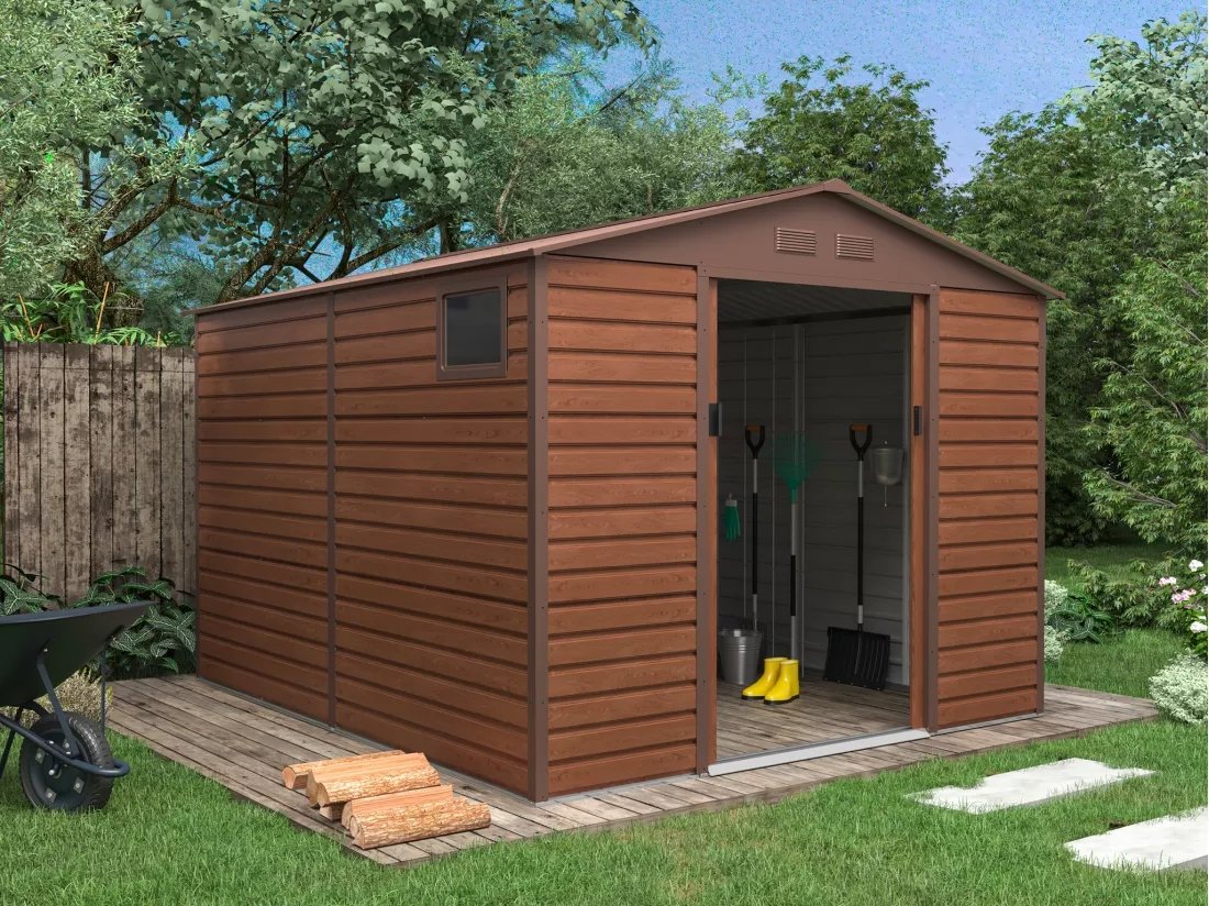 Cobertizo de jardín de acero galvanizado con efecto madera – 8,94 m² – ADELMO