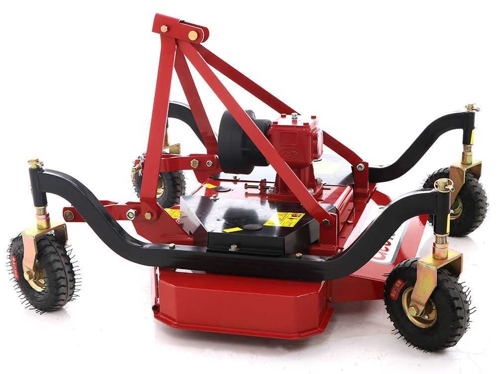 Il a une amplitude de coupe de 120 cm qui peut être réglée en hauteur grâce aux roues sur diverses positions qui varient de 30 à 70 mm.