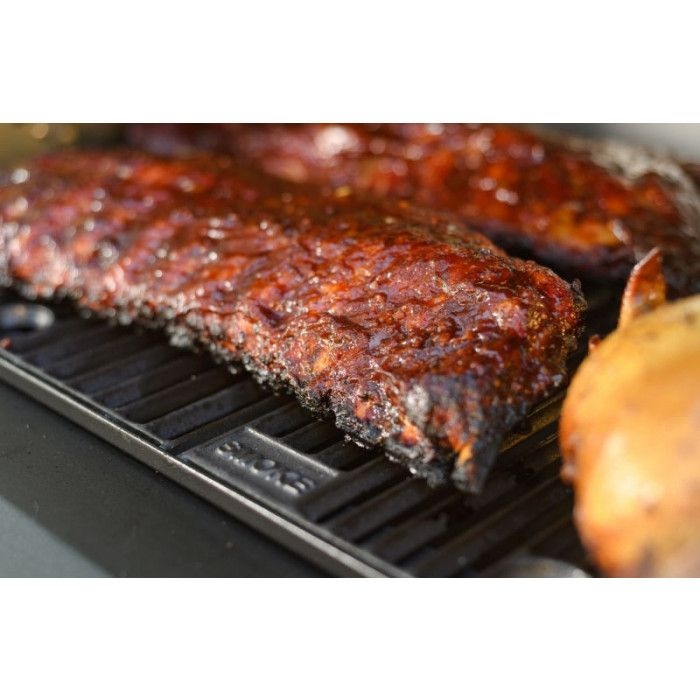 Cette référence offre une surface de cuisson de 3 610 cm² pour des tablées d’au moins 8 à 10 personnes La surface, fabriquée en fonte, assure un haut niveau de rétention de chaleur et se veut des plus robustes. Grâce à ses qualités, elle se prête particulièrement à la cuisson des viandes. Concernant les possibilités de rangements, on retrouve une tablette latérale, une tablette frontale et une tablette basse. Pour finir, l’appareil met l’accent sur la sécurité en proposant un garde-flamme.