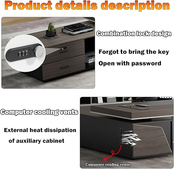 - Espace de rangement spacieux et espace de travail efficace : le bureau de grande taille et l’armoire latérale étendue offrent un plus grand espace de fonctionnement et une grande zone de rangement, ce qui facilite l’organisation et l’accès aux documents de bureau, aux articles et aux équipements, garde le bureau propre et bien rangé, et améliore l’efficacité du travail.