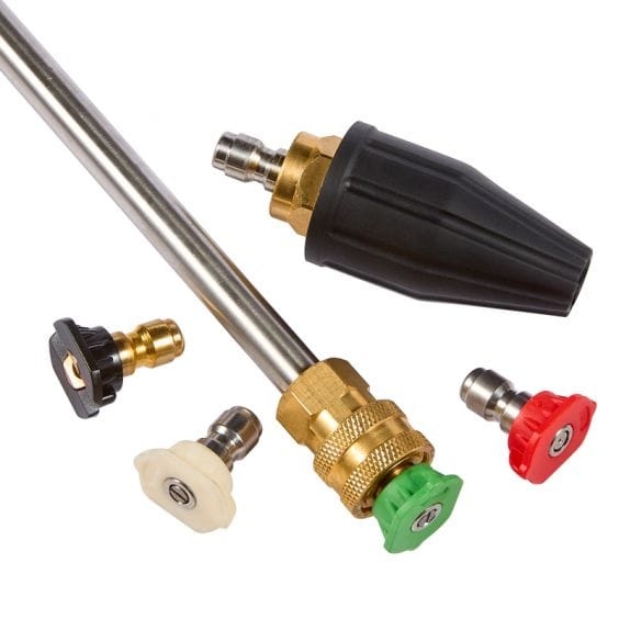 - Accessoires : 4 Buses (0°/15°/25°/40°) + 1 buse pour détergent + 1 rotabuse + 1 kit d’aspiration de 2m incluant le tuyau et la crépine