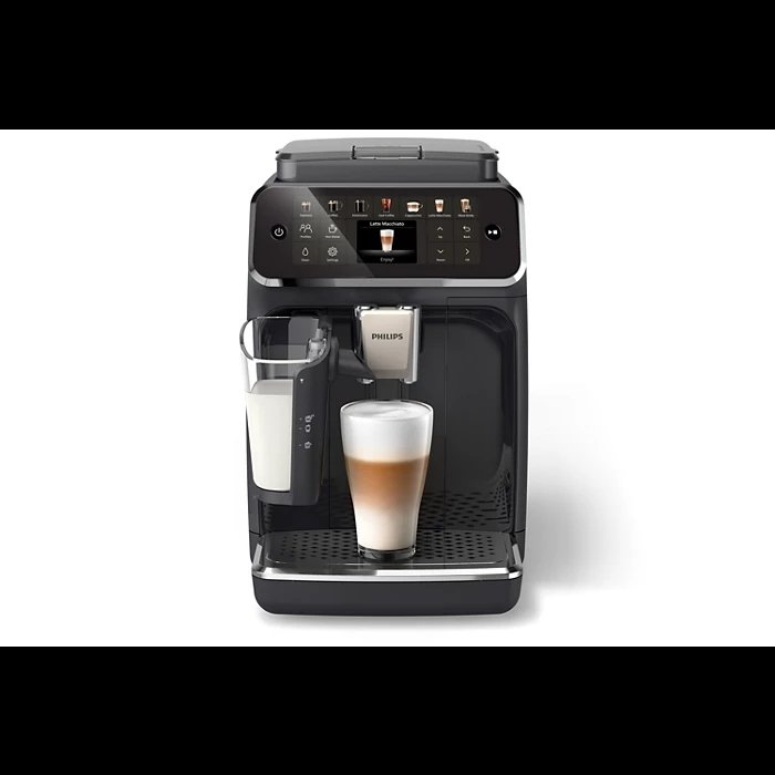De Philips EP4441/50 volautomatische koffiemachine biedt hoogwaardige koffiespecialiteiten met één druk op de knop. Dankzij het LatteGo-melksysteem maak je eenvoudig romige cappuccino’s en latte macchiato’s zonder gedoe. De machine heeft een modern zwart design met roestvrijstalen accenten en een intuïtief kleurendisplay voor gebruiksgemak. De keramische maalschijven zorgen voor een gelijkmatige maling en een intense smaak, terwijl het AquaClean-filter kalkaanslag vermindert en minder vaak ontkalken nodig maakt.