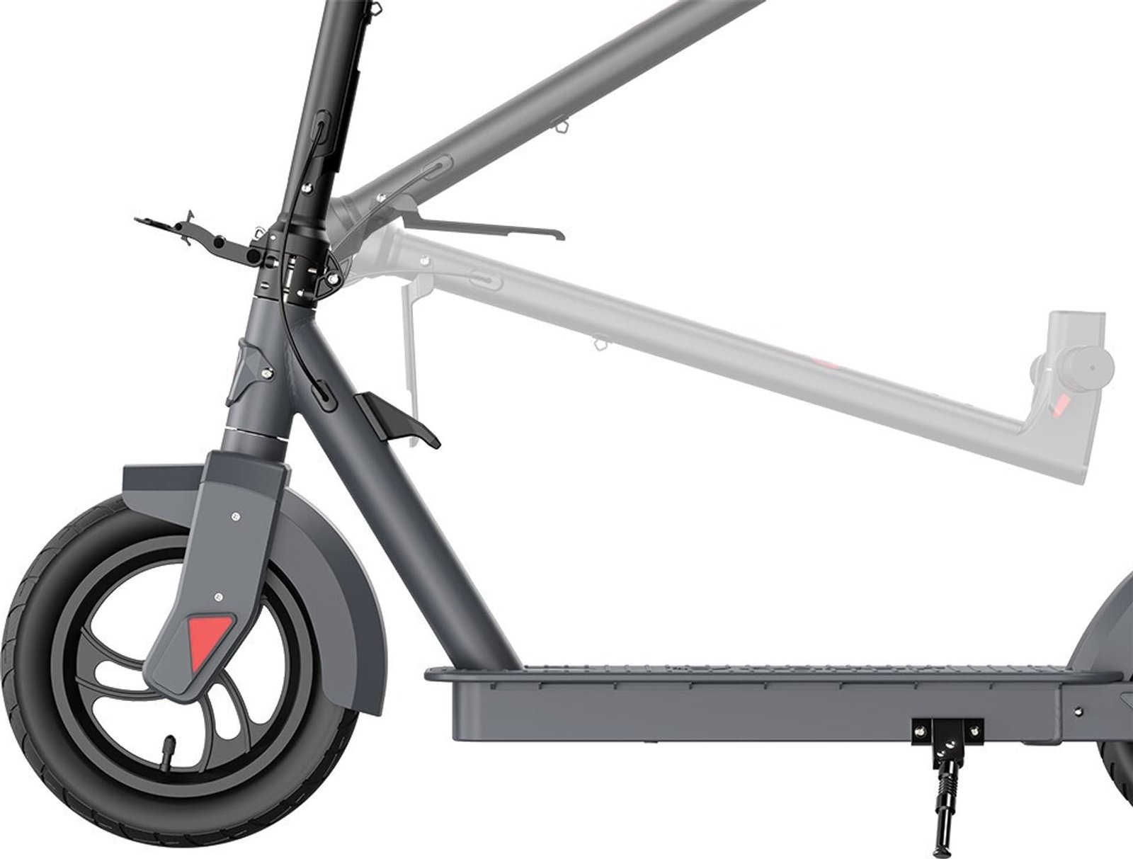 De E-step kenmerkt zich door een groot 12.5 inch voorwiel en een 8.5 inch achterwiel incl. de borstelloze hub-motor van 350 Watt.