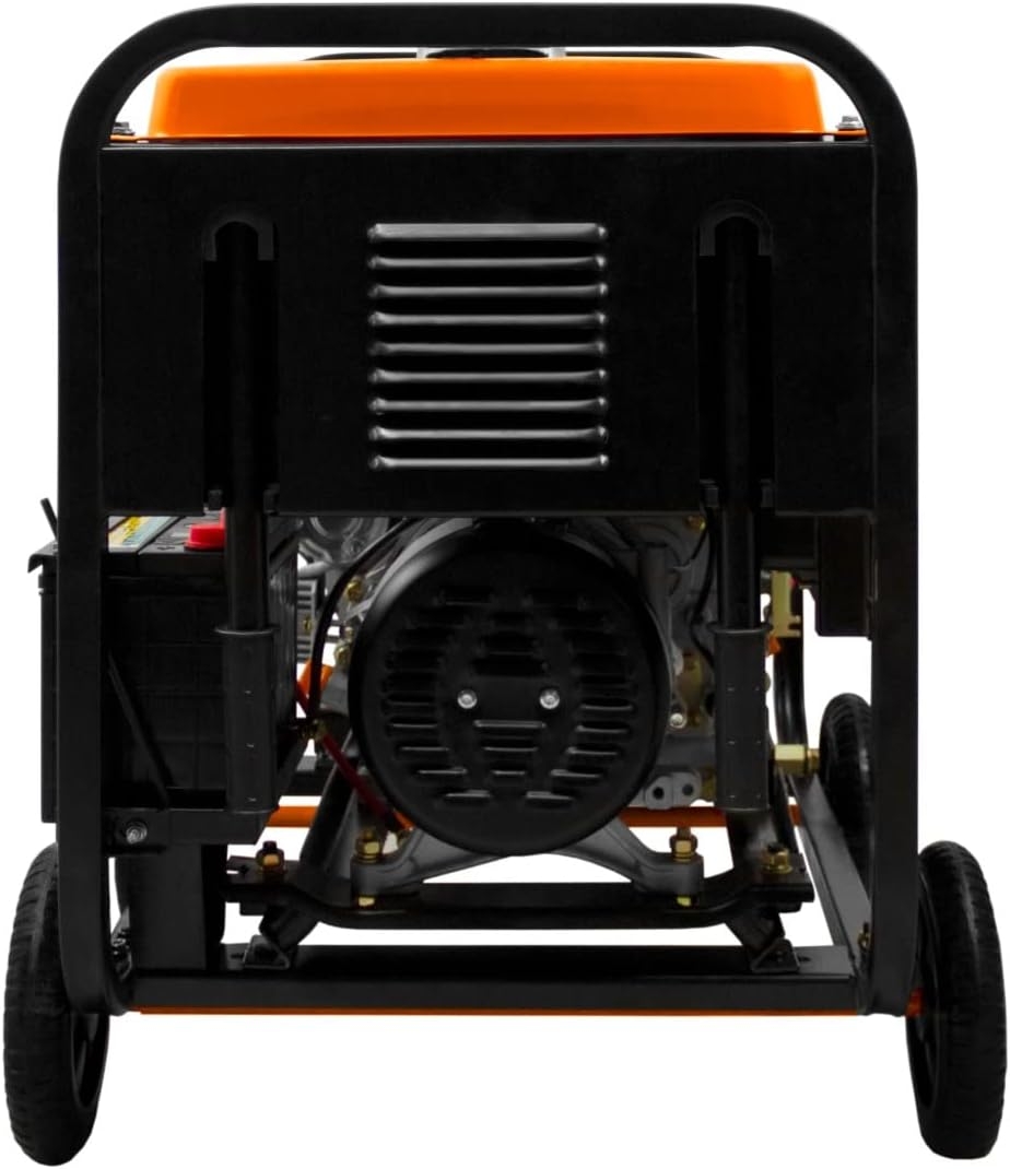 Fabriqué à partir d’un acier enduit de poudre solide, le générateur est incroyablement résistant aux rayures et à la corrosion pour garantir de rester dans son état d’origine et offrir une performance puissante et constante au fil du temps. La finition noire épurée et ses détails orange crée un design vraiment unique qui se fondra parfaitement dans votre environnement. Bien que son cadre spot ouvert, la machine est modérément silencieuse lors de son utilisation, à peine 77 dB à 7 m, pour une expérience plus agréable. De plus, le déplacement du groupe électrogène est facilité grâce aux 4 roues robustes de 20cm et aux poignées robustes repliables, qui sont adaptées à la conception du cadre industriel.