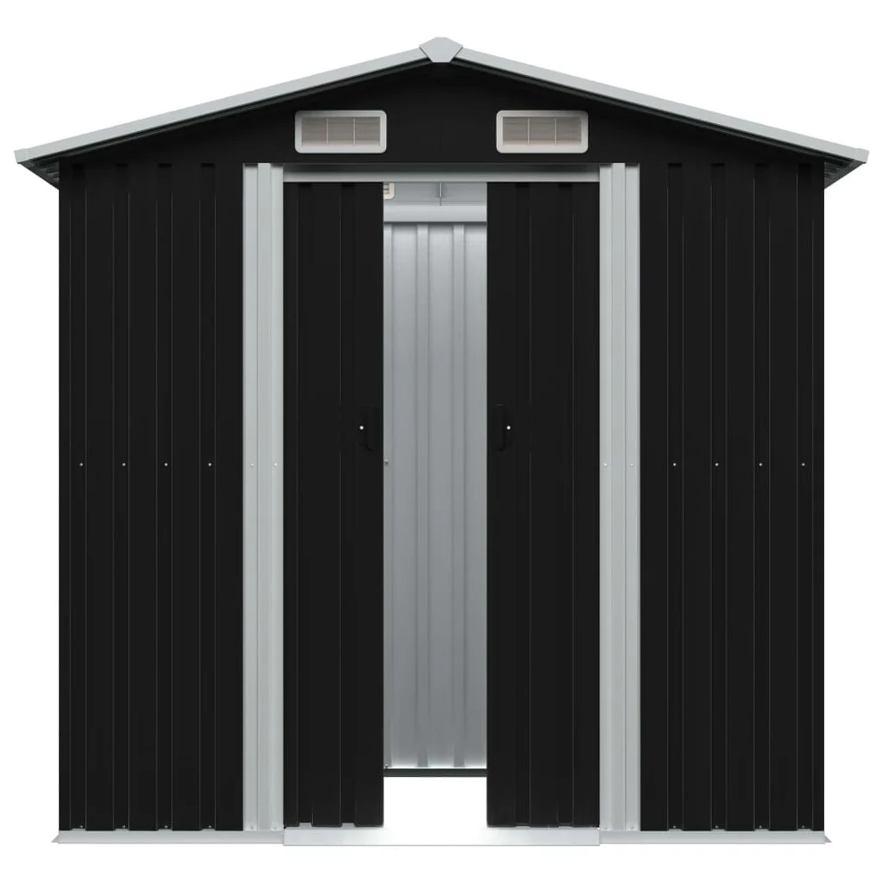 Met de Tuinberging 204x132x186 cm staal antraciet creëer je een ideale oplossing voor het opbergen van al je gereedschappen en materialen. Deze metalen berging is ontworpen voor zowel functionaliteit als duurzaamheid, perfect voor in jouw tuin of op je terras.